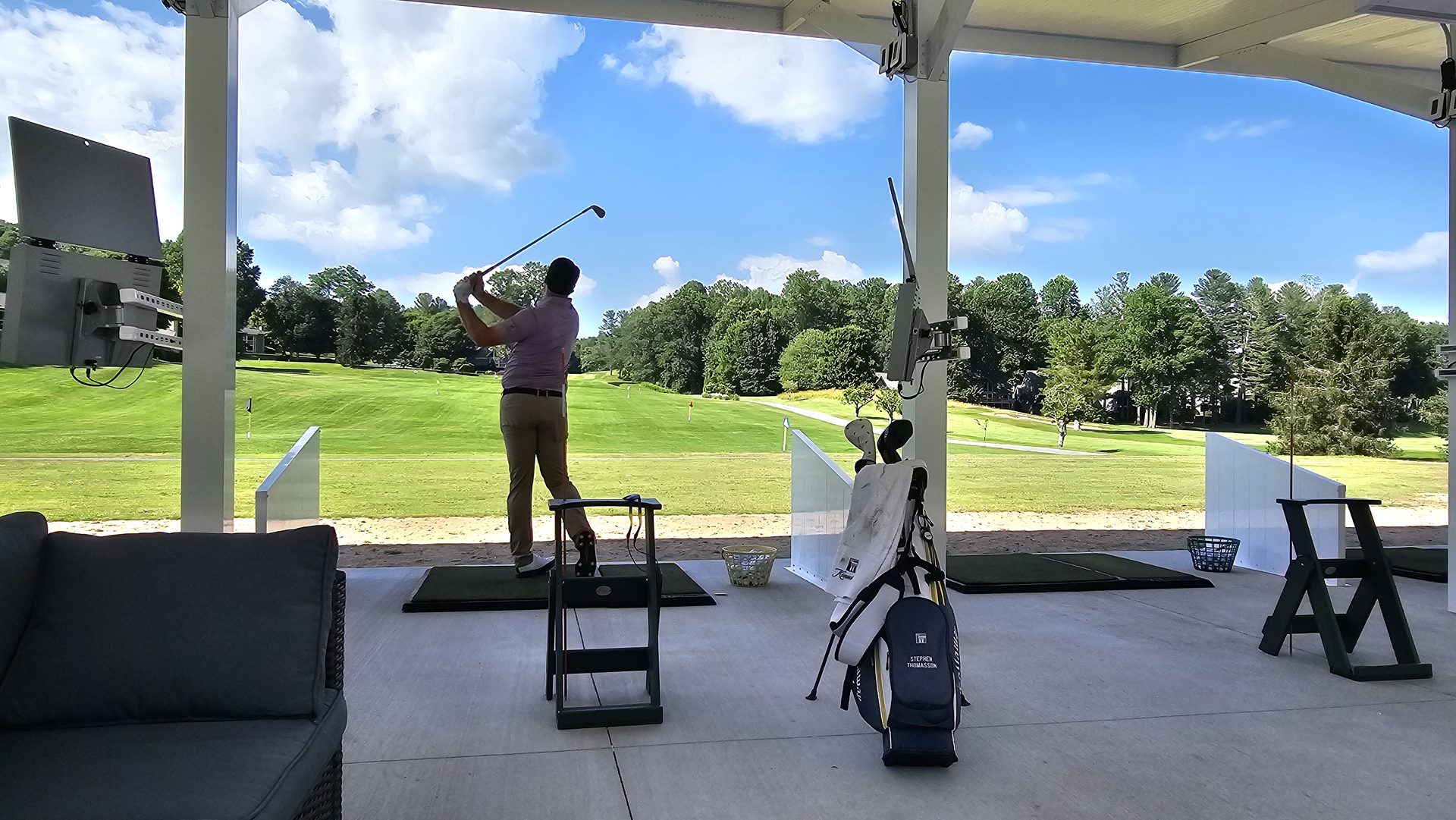 Once operational, the range quickly became a new social focal point. Members tested the Toptracer system, hitting under the canopy as monitors displayed live ball-flight data and performance feedback.